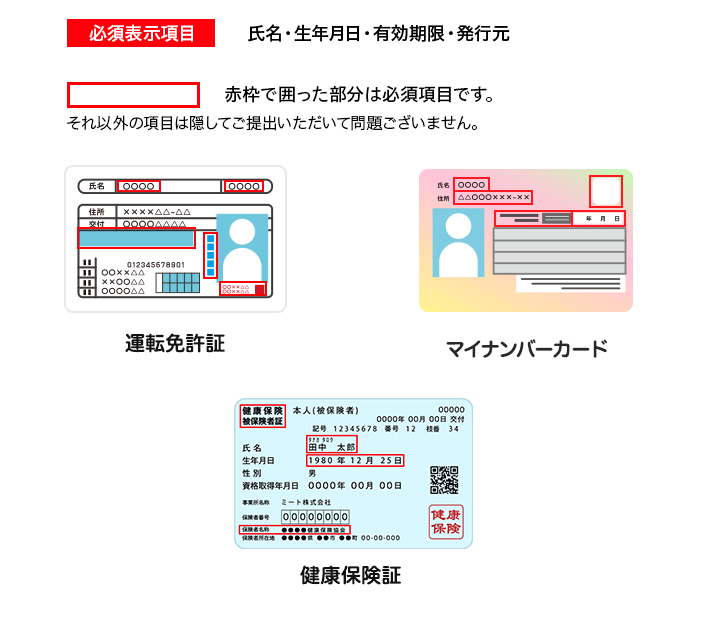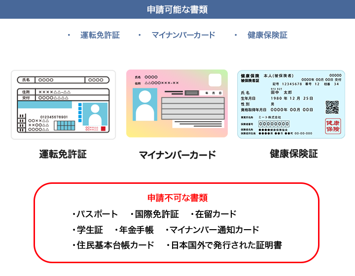 以下のような年齢確認書類では承認できませんのでご注意ください。